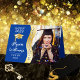 Graduados, digan "Gracias" en estilo elegante con este tono azul profundo y dorado "Graduado" foto gracias al diseño. La plantilla presenta una mirada ondulada en el lado izquierdo con la palabra "Graduado" en el fondo ondulado dorado acompañado de un tapón de graduación en tono dorado a la izquierda y el año de clase del graduado, nombre y las palabras "gracias" en blanco. La parte posterior incluye su mensaje único, junto con su firma de cierre y tipeada. O si prefiere estar en blanco, asegúrese de que los campos están borrados/borrados y de que el personalizar cambia el color de fondo del interior a blanco. Ilustracion original y diseño de Holiday Hearts Designs (derechos reservados) con crédito de foto de marcador de posición a Logan Isbell vía Unsplash.