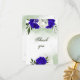 romántico azul real y flores blancas con algunas hojas verdes tarjeta de agradecimiento botánica. Los detalles de purpurina dorada son simulados