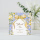 La "Tarjeta de agradecimiento Coqueta Elegante de Baldosa Mediterránea de Limón Italiano" es una forma sofisticada y sincera de expresar gratitud a los invitados que celebraron a la futura novia. El diseño presenta delicadas ilustraciones de acuarela de limón floral, entrelazadas con baldosas azules mediterráneas, creando una nota de agradecimiento visualmente atractiva y celebratoria. La fuente de letra elegante añade un toque de belleza refinada, lo que la convierte en la forma perfecta de reconocer la amabilidad y generosidad de los seres queridos. Con amplio espacio en blanco en el reverso, esta tarjeta ofrece un toque personal para un mensaje manuscrito de agradecimiento.