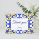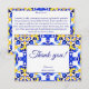 azulejos de Talavera azules y amarillos vintage regaderazo mexicano tarjetas de agradecimiento boda, patrón de azulejos azules Mediterráneo italiano baldosas Maiolica azulejos Griegos patrón tarjetas de agradecimiento boda tarjetas