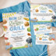 Celebra a la futura mamá con un baby shower en el patio trasero lleno de sabor y diversión. Esta invitación de baby shower "Bun in the Oven and Burgers on the Grill" (Panecillo en el horno y hamburguesas a la parrilla) es la forma perfecta de invitar a los invitados a una celebración estilo barbacoa en honor a tu pequeño en camino. Con ilustraciones de acuarela de jugosas hamburguesas, herramientas para asar, rodajas de sandía, maíz en la mazorca y una clásica mesa de picnic con tela de cuadros azules, esta invitación trae todo el encanto de una barbacoa de verano con un toque de bebé varón. El diseño divertido y el texto editable hacen que sea fácil personalizar para cualquier baby shower casual, rústico o al aire libre.