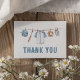 Digan gracias a sus amigos y familiares por celebrar al pequeño en el camino con esta tarjeta de agradecimiento de la ducha de bebé con temas de béisbol.