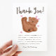 Cute oso tema de ducha bebé, tarjeta de agradecimiento que incluye el ilustracion de un oso cubo con arco rosa y corazones. El mensaje da las gracias a los clientes por venir a la ducha y por sus regalos. Perfecto para una ducha de chica en otoño.