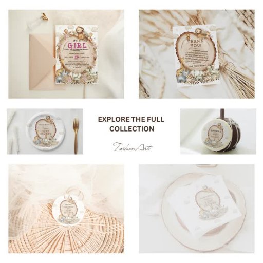 Esta tarjeta de agradecimiento de boho es única y combina elementos rústicos vintage en tonos cálidos como beige, flausto y marrón. Los animales adorables de la jungla, incluyendo un león, un mono, tigre, cebra, rinoceronte, elefante y jirafa, añaden un toque juguetón. La elegante hierba de pampas y las hojas de palma completan el fondo de la rodaja de madera, creando un ambiente acogedor y acogedor.
