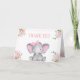 Tarjeta De Agradecimiento Baby Shower de Elefante Floral Rosa