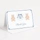 Este diseño se muestra como una tarjeta de agradecimiento, pero también funcionaría bien como papel personalizado con un nombre. Este diseño presenta un escudo monograma central con arco de cinta, con un oso de peluche tipo tradicional a cada lado. Todos los elementos acuarelas pintados originalmente a mano por mí en acuarelas antes de ser escaneados en forma digital. Está rodeado por un borde clásico de "llave griega" y un motor de patrón de correspondencias. Puede cambiar el color de contraste del borde de la clave griega en la parte delantera y trasera (que se muestra aquí como azul oscuro) a cualquier color que desee introduciendo la herramienta de diseño (debajo del área de personalización de texto, haga clic en "personalizar más adelante") y luego cambiar el color de fondo en la parte delantera.