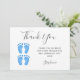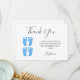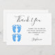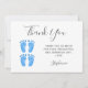 Esta tarjeta de agradecimiento Baby Shower de Twin Boys está decorada con tipografía moderna y bonitos pies de bebé color azul. Personalizable fácil. Acuarela original © Michele Davies.
