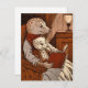 La imagen muestra una cálida escena de dos hurones, un adulto y un joven, sentados en un sillón de madera. El hurón adulto, con una bufanda roja y blanca, sostiene un gran libro con un enlace rojo, mientras que el más joven, con gafas, se sienta cómodamente en su regazo. La sala está iluminada por una lámpara colocada sobre una mesa lateral que aporta un cálido resplandor al escenario.