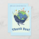 Tarjeta de agradecimiento de Ballena Azul Moderna y Bonita para el Día de la Tierra - Di gracias de una manera única con estas tarjetas de agradecimiento del Día de la Tierra, lindas y caprichosas. Con una ilustración de acuarela de una ballena azul con el planeta Tierra y flores silvestres.