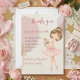 Send a final touch of grace to your friends and family with these elegant ballerina-themed thank you cards. The front of the card features a stunning, high-resolution watercolor illustration of a delicate ballet dancer in a soft pink tutu, accented with a shimmering gold tiara and matching ballet slippers. Set against a whimsical pastel background with artistic gold glitter-style details, this design perfectly captures the magical spirit of your daughter’s celebration.