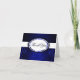 Tarjeta de agradecimiento azul y blanco con franjas azul claro y oscuro y una cinta blanca cruzando diciendo "gracias".