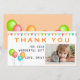 Bandera de banderín de globo Cumpleaños Foto Tarjeta de agradecimiento. Diseño divertido con globos de fiesta coloridos y banderas de banderín. Agregue su foto y texto.