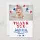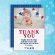 Tarjeta de agradecimiento de banderas de Bunting lindas rojo azul para cumpleaños de niños. La tarjeta tiene banderas de Bunting rojas, azules y blancas sobre la foto. Personalice la tarjeta con la foto y el nombre del niño. También puede cambiar el mensaje de agradecimiento y escribir el suyo si lo desea.