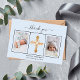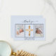 Añade 2 o 3 de tus propias fotos y una nota de agradecimiento. Un fondo azul claro clásico con texto negro y marco. El texto: Gracias en la parte delantera y sus nombres en la parte trasera están escritos con un elegante guión con letras a mano con guiones.