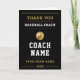 Show your appreciation with this “Thank You Baseball Coach” card featuring a clean and modern black and gold design. Perfect for teams and parents looking for a meaningful and stylish way to thank their coach at the end of the season. Ideal for baseball teams, coach appreciation, and end-of-season gifts.