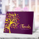 ¡Asegúrate de que tu favorito Bat Mitzvah muestre su aprecio a todos los que apoyaron su evento! ¡Envíe esta sofisticada tarjeta de agradecimiento personalizada! Este gráfico árbol de Relieve metalizado dorado falso con brillantes "hojas" rosadas, naranjas y rojas Estrella de David y "hojas" de punto sobrepone un rico fondo morado. Personalice el texto del personalizado con el nombre de su Bat Mitzvah. ¡Garantizado para darle un toque de diseño a su correspondencia! En esta colección de moda y especial también se encuentran disponibles invitaciones de correspondencia y coordinación, etiquetas de direcciones, pegatinas, tarjetas de ubicación, números de mesa, servilletas, álbumes y otras mercancías de Bat Mitzvah. Simplemente teclee su nombre en el frente y agrega tu mensaje personalizado en el interior, y puedes personalizar fácilmente esta tarjeta de agradecimiento. Por favor, envíame cualquier pregunta o petición.