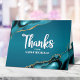 ¡Asegúrate de que tu favorito Bat Mitzvah muestre su aprecio a todos los que apoyaron su evento! Envíe esta tarjeta de agradecimiento fresca, única, moderna y personalizada. Escritura manuscrita blanca y tipografía en negrita sans serif superponen un fondo oscuro azul profundo con agate azul turquesa acentuado con finas venas de oro. Agar azul turquesa adicional y una estrella de David de falso oro, junto con tu nota personalizada, adornan el interior. Personalice el texto del personalizado con el nombre y el mensaje personalizado de su Bat Mitzvah. ¡Garantizado para darle un toque elegante a su correspondencia! Simplemente teclee su nombre en el frente, agrega tu mensaje personalizado en el interior, y puedes personalizar fácilmente esta tarjeta de agradecimiento de Bat Mitzvah. Por favor, envíame cualquier pregunta o petición.