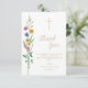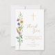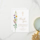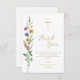 Esta tarjeta de agradecimiento floral Baptism incluye flores silvestres y una cruz con tipografía de escritura elegante. Personalizable fácil. Acuarela original © Michele Davies.