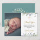 Con hojas verdes frescas y delicadas con tonos lilas, esta elegante tarjeta de agradecimiento para bautizo o presentación puede ser personalizada con su mensaje y foto de agradecimiento especial. Diseñado por Thisisnotme©