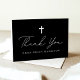 Simple y elegante tarjeta de agradecimiento del Bautismo con una cruz en el frente con "Gracias" mostrada en un guión casual de caligrafía blanca con fondo negro. Personalice la parte delantera de la tarjeta de agradecimiento de Bautismo en blanco y negro con el nombre de su hijo. El interior de la tarjeta plegada de agradecimiento muestra una foto horizontal con el mensaje que se muestra a continuación. Este diseño funciona muy bien para los bautismos de niños o chicas.