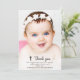 Un diseño de foto personalizado simple y moderno para agradecer a todos los que asistieron al bautizo o comunión de su hijo. El mensaje de texto tipográfico es personalizable. Puede cambiar la fuente, el color y el tamaño de la letra. También puede cambiar el color de la cruz y el gráfico de agradecimiento y reposicionar el texto utilizando la herramienta de diseño. El diseño de especial agradecimiento para mostrar su amor y gratitud es suyo para personalizar y adecuar como desee. El diseño neutral en cuanto al género es adecuado para un niño o niña. Reemplace la imagen con una foto vertical del niño.