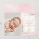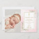 Tarjeta de agradecimiento de foto de bautizo floral rosa dorada con vegetación. Personalice con su foto y mensaje especial de agradecimiento de bautizo en tipografía dorada elegante. Diseñado por Thisisnotme©