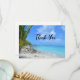 Thank you card with a scenic tropical photograph. A secluded beach with white sand and turquoise water.