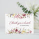 Diga gracias con estilo con esta tarjeta coordinadora de Baby Shower Wildflower Gracias. Decorado con suaves flores de acuarela y vegetación, este diseño combina perfectamente con el tema de la ducha de bebé boho y hace que mostrar gratitud sea aún más hermoso. Tenga en cuenta que las flores silvestres y otras ilustraciones gráficas no se pueden editar, mover ni borrar. Está arreglado.