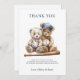 Expresar gratitud con esta tarjeta de agradecimiento a tu ducha de bebé gemela que incluye osos de peluche acuarela con bolas de béisbol y un murciélago rústico de madera. El mensaje incluido es fácil de personalizar, lo que le permite editar el texto para reflejar su propio estilo y sentimientos. Una manera dulce y reflexiva de agradecer a los invitados por su amabilidad y apoyo mientras celebran la próxima llegada de mellizos.