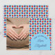 ¡Un bebe dulce está en camino! Arándanos y fresas con un patrón de tablero de ajedrez azul y blanco y un arco de moda. Plantilla de foto vía Pixabay bajo licencia CC0 y debe ser reemplazada por su propia foto