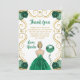 This birthday thank you card features an elegant gold frame, a beautiful princess with blonde hair and a emerald green dress, flowers and a balloon.