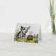 Un cerdo adorable está mirando un pastel de cumpleaños.