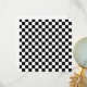 Black and white checkerboard pattern with evenly spaced, alternating squares. The design creates a classic, symmetrical look commonly seen in chessboards.