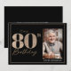 Tarjeta De Agradecimiento Black & Gold Elegant Glitter 80th Photo Birthday