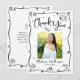 Make sure your favorite grad shows appreciation to all who supported their milestone event! Send out this quirky, playful, simple, modern, personalized photo thank you card. On the front, fun black handwritten script typography and hand drawn graduation icon sketch doodles, along with your custom photo, overlay a minimal white background. Add the photo of your choice and personalize the custom text with your grad’s name, and class year. On the back, type in your custom message or delete the copy altogether so you can write your own handwritten note. Matching invites, address labels, banners, stickers, hand fans and other graduation goodies are also available in this trendy and stylish collection. Guaranteed to add a stylish touch to their correspondence!