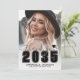 A classic yet modern graduation thank you card with a clean, timeless layout. The front features a full-page photo with a soft white gradient at the bottom that blends smoothly into the image. Over the gradient, “2026” is displayed in a bold, classic school-style font in black, while “thank you” appears just above it in elegant handwritten script in gray. A small graduation cap icon sits to the left of the year in black for a subtle celebratory touch. Below the year, the graduate’s name and school name are clearly displayed in black for a polished finish.