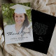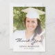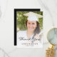 Simple y moderna tarjeta de agradecimiento por graduación con una foto vertical personalizado. Las palabras "Gracias" aparecen en sobras de escritura informal negra, con el nombre del graduado y el año de graduación debajo en letra sans serif. Reemplace fácilmente la imagen de muestra con la foto de su propio graduado. Una pantalla de degradado blanco ayuda a asegurar que aparece el texto. Personalizar el texto al revés con tu propia nota de agradecimiento.