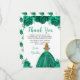 This Quinceanera thank you card features faux glitter green floral flowers and a beautiful princess with blonde hair and an elegant dress. This is perfect for a Quinceanera birthday party.