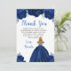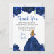 Esta dulce carta de agradecimiento de dieciséis años tiene flores florales color azul marino purpurina y una hermosa princesa con el pelo rubio y un vestido elegante. Es perfecto para una dulce fiesta de 16 años.
