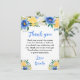 Tarjeta De Agradecimiento Blue and Yellow Floral Birthday