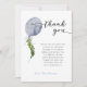 Cuta temática de globo de ducha de bebé, tarjeta de agradecimiento con acuarela de ilustracion de un globo azul con hojas de vegetación. El mensaje da las gracias a los clientes por venir a la ducha y por sus regalos.