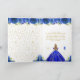 This elegant and glamorous birthday thank you card features a beautiful princess with blonde hair and fair skin in a royal blue ball gown. The text combines handwritten script and modern sans serif fonts for a classy and sophisticated look. The floral arrangements, butterflies and gold confetti create the perfect blend of rustic and chic.