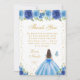 Tarjeta De Agradecimiento Blue Floral Brunette Hair Princess Birthday Party