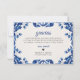 This Blue Floral Elegant Fiesta Spanish Wedding Thank You Card design features delicate blue floral and swirl motifs inspired by traditional Mexican Talavera pottery, arranged elegantly in the corners. The deep blue hues contrast beautifully against the soft, textured white background, creating a clean and refined look. Ideal for wedding invitations or formal event stationery, this design adds a touch of cultural charm and timeless elegance.
