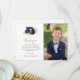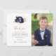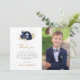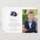 Esta elegante y moderna tarjeta de agradecimiento de la Primera Comunión presenta una pequeña cruz blanca en un ramo de flores azul marino y follaje dorado, con las palabras "Gracias" en escritura a mano de color dorado sobre fondo blanco. Guarde el texto del personalizable o sustitúyalo por su propio mensaje, agregue el nombre de su hijo en escritura a mano en oro y reemplace fácilmente la imagen de ejemplo con una foto de su propio hijo.