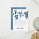 Digamos gracias con estilo con esta tarjeta azul Jean Baby Boy Gracias, la perfecta mezcla de encanto moderno y de moda denim vibes. Con un bonito diseño inspirado en el jean azul, ropa de bebé juguetona y caligrafía de escritura suave, esta tarjeta le agrega un dulce toque de aprecio a su ducha de bebé. Con su sencilla disposición y su agradable paleta de colores, es una buena forma de mantener el tema mientras expresas una sincera gratitud a los huéspedes que celebran a tu pequeño en el camino. Rellene su ducha de bebé con este adorable toque de acabado: ¡solicite hoy sus tarjetas de agradecimiento!