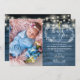 Tarjeta De Agradecimiento Blue Rustic String Lights Photo Baptism