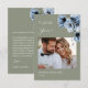 Blue transparent flowers on a custom photo with a left aligned thank you text.
