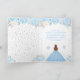 Esta elegante y glamorosa tarjeta de agradecimiento incluye una hermosa princesa con el pelo castaño y piel clara en un vestido de bolas azules. El texto combina el guión manuscrito y las fuentes sans serif modernas para un aspecto elegante y sofisticado. Los arreglos florales, copos de nieve y confitis de plata crean la perfecta combinación de rústico y moda. Perfecto para una fiesta de cumpleaños con temática invernal. Gráficos de www.etsy.com/uk/shop/SunflowerDayLove