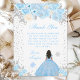 Esta elegante y glamorosa carta de agradecimiento presenta una hermosa princesa con el pelo oscuro y la piel oscura en un vestido de bola azul. El texto combina el guión manuscrito y las fuentes sans serif modernas para un aspecto elegante y sofisticado. Los arreglos florales, copos de nieve y confitis de plata crean la perfecta combinación de rústico y moda. Perfecto para una fiesta de cumpleaños con temática invernal. Gráficos de www.etsy.com/uk/shop/SunflowerDayLove